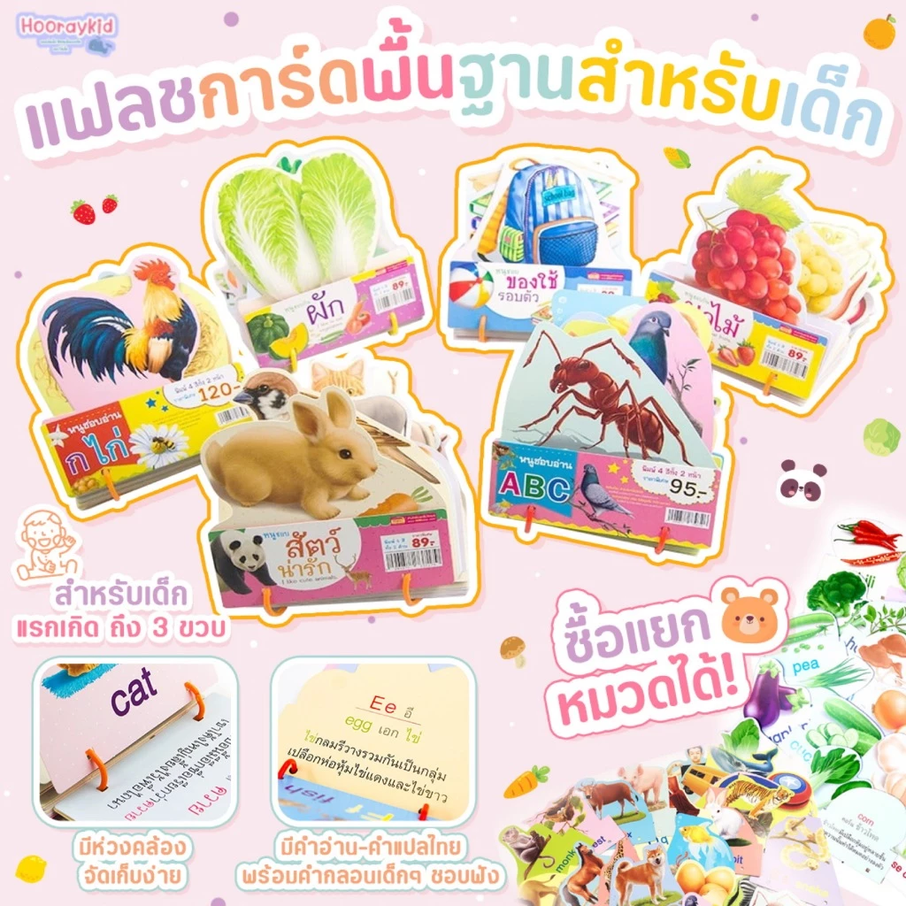 แฟลชการ์ดห่วงพื้นฐานสำหรับเด็ก มี 6หมวด Flashcard กไก่ ABC 123 ผัก ผลไม้ สัตว์ มีห่วงคล้อง ใช้ง่าย เก็บสะดวก